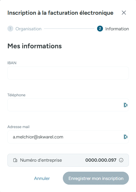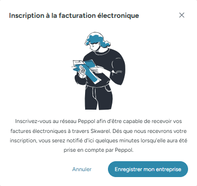 Skwarel se charge de vous tenir au courant de votre lorsque votre inscription au registre Peppol est opérationnelle.