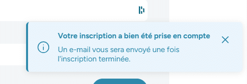 Lorsque vous validez les champs, vous recevrez une notification en bas à droite de votre écran qui vous indique que votre demande bien est bien prise en charge.